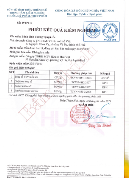 Tổ chức chịu trách nhiệm về hàng hóa: Công ty TNHH MTV Hữu cơ Huế Việt