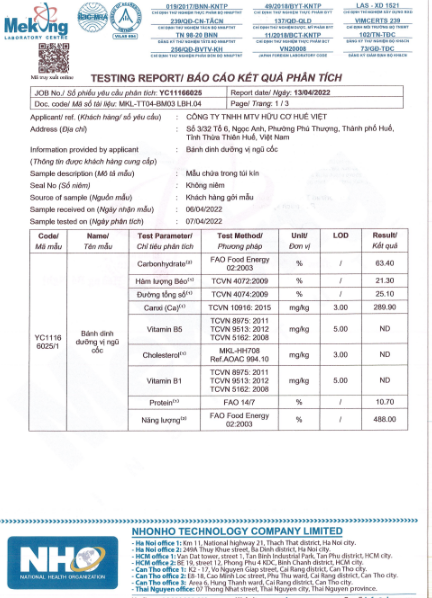Đặc điểm nổi bật của bánh dinh dưỡng ngũ cốc Huế Việt