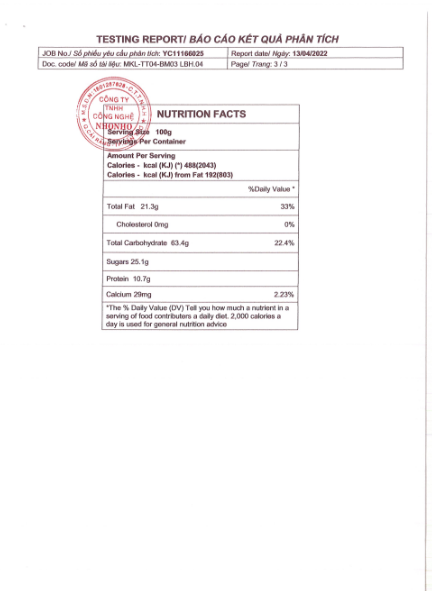 Giá trị dinh dưỡng: Bánh dinh dưỡng Huế Việt giàu chất xơ, protein, cung cấp chất chống oxy hóa cùng các vitamin cần thiết như B1, B2, B3, B6,…