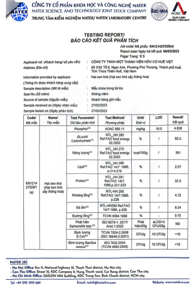 Tổ chức chịu trách nhiệm về hàng hóa: Công ty TNHH MTV Hữu cơ Huế Việt
